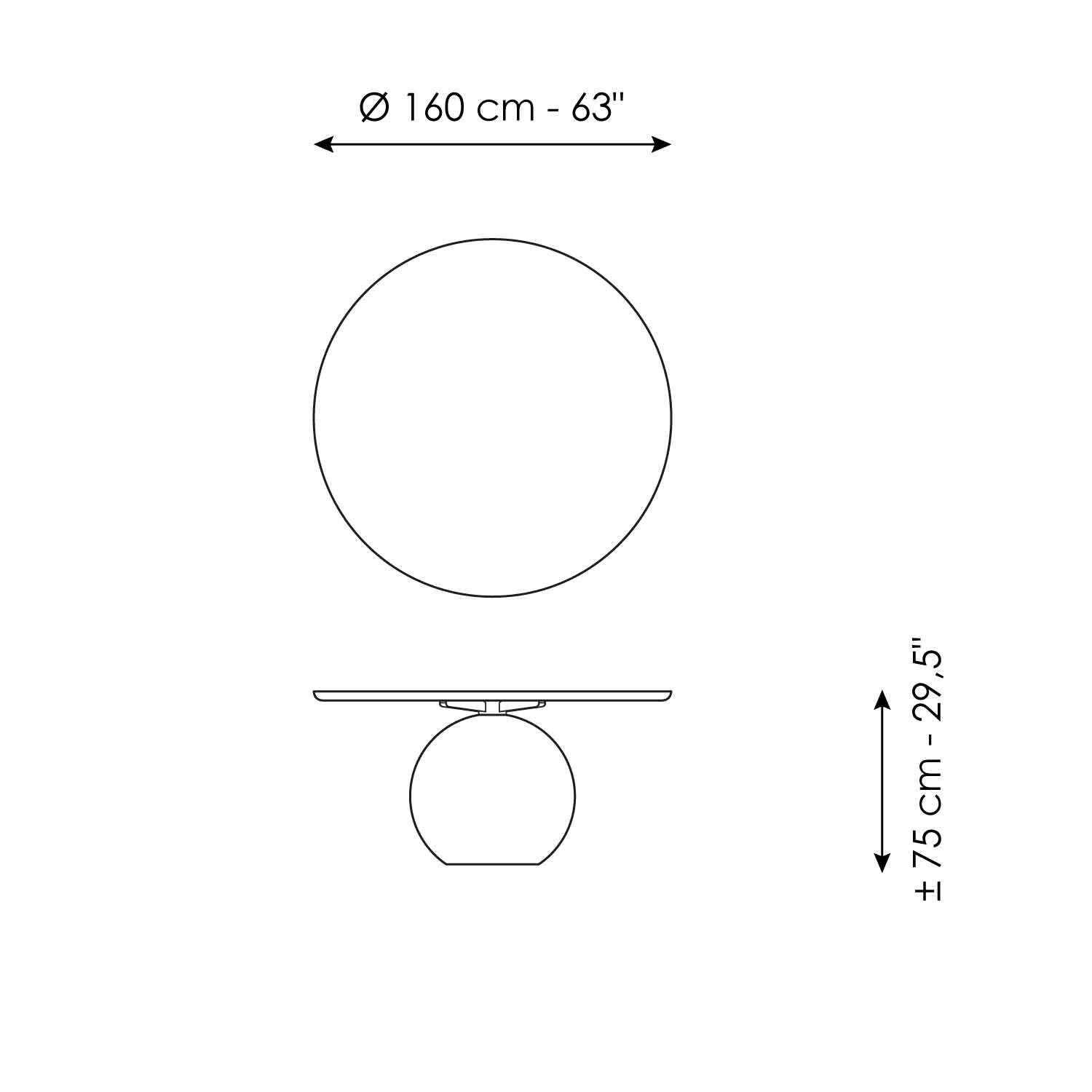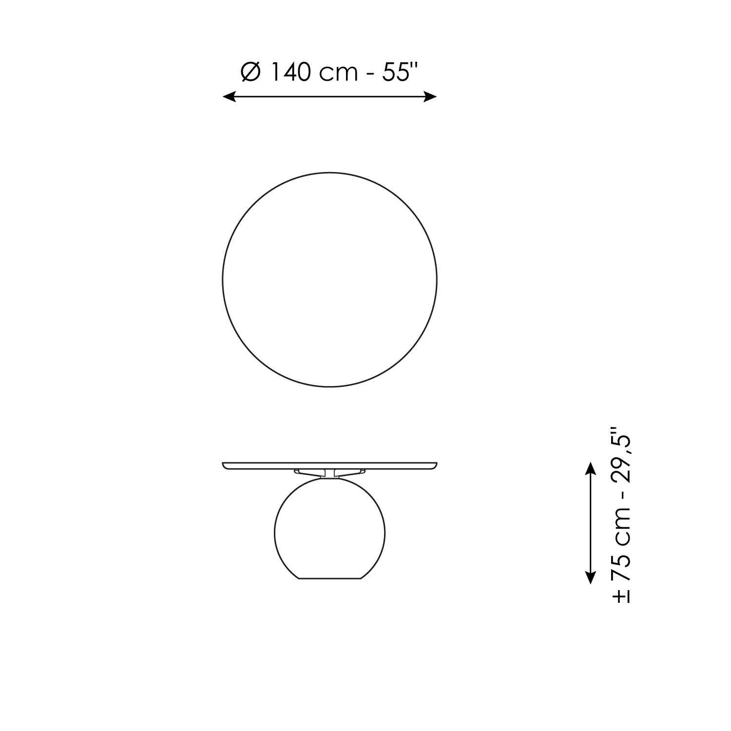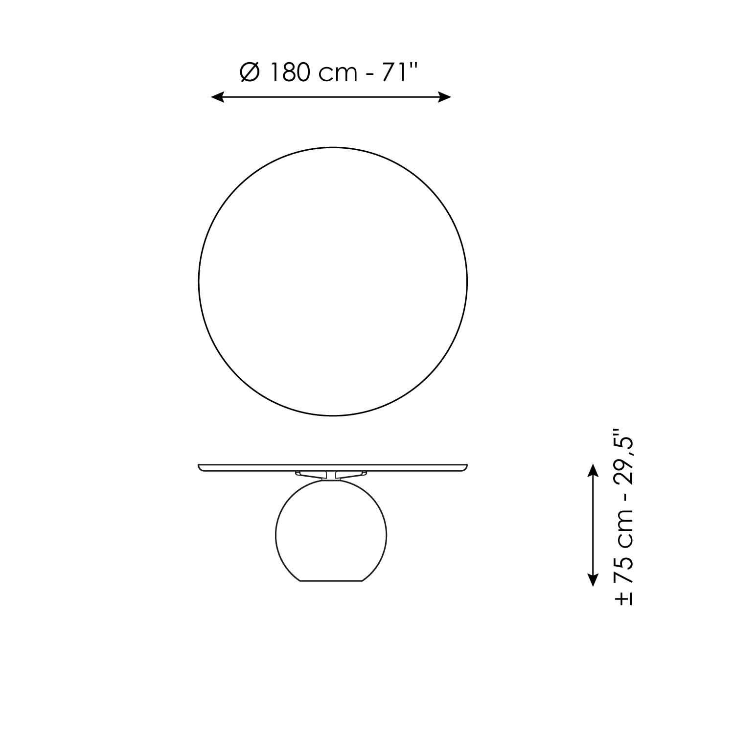 Circus ist ein fester Tisch, der die Gesetze der Physik durch die Gegenüberstellung unterschiedlicher geometrischer Formen aufruft: auf dem auffälligen und eindrucksvollen Kugelsockel in der Mitte befindet sich eine große Scheibenplatte und verleiht dem Tisch so ein angenehmes Gefühl von Bewegung. Der Tisch erlangt Stärke und Eleganz in einem in seiner Art einzigartigen Spiel mit dem Gleichgewicht, womit er zum Blickfang im Wohnzimmer wird. Die Platte ist verfügbar aus Massivholz, Keramik oder Marmor und passt sich perfekt dem Stil des Wohnbereichs an, indem sie sich harmonisch in den Raum einfügt, ohne dabei ihre Einzigartigkeit zu verlieren. Der Sockel aus Metall ist in verschiedenen Versionen erhältlich, darunter die eleganten Ausführungen in Perlgold, Blei, Bronze, Brüniert, Dark Nickel, Brown Nickel und Clouded Chrome.