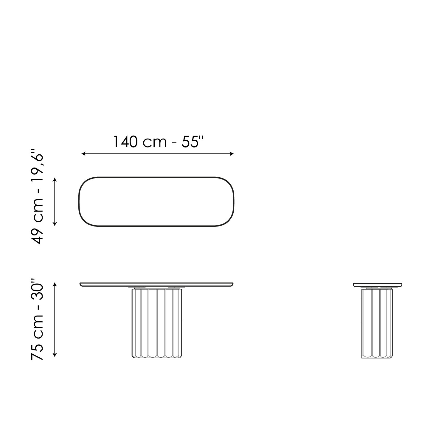 Dorian Console, a stunning design console table, is clearly inspired by the model of the Doric column: the essential element in ancient Greek architecture is in fact reinterpreted as the supporting base of this piece of furniture. Made of polyurethane with a brushed finish, the base features the typical grooved pattern. Where the classic capital was once originally located, there is now the slender surface of the top – available in wood, ceramic or marble - which highlights the visual contrast between the two parts.