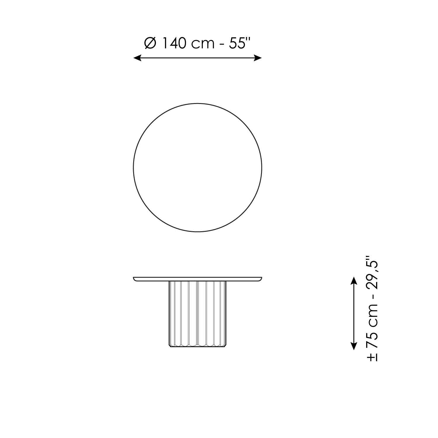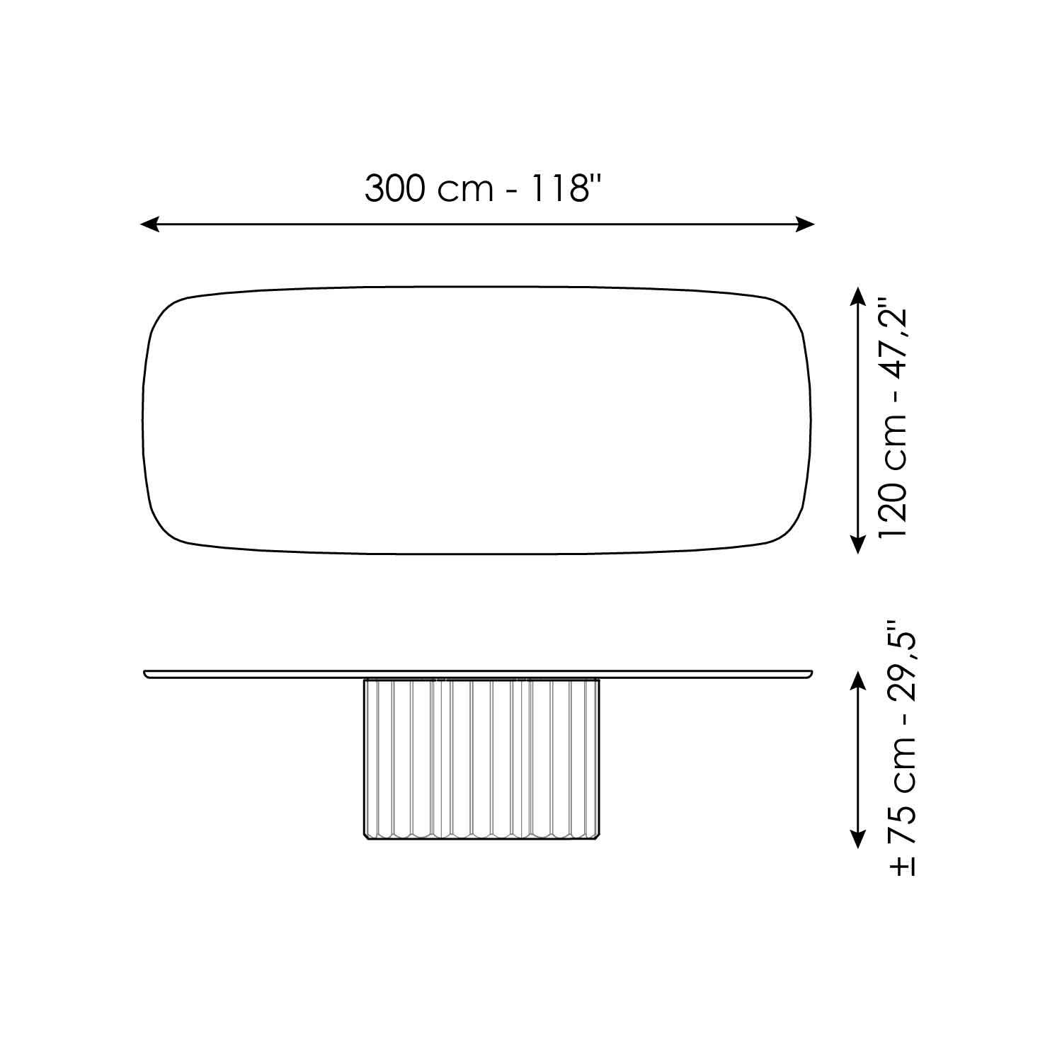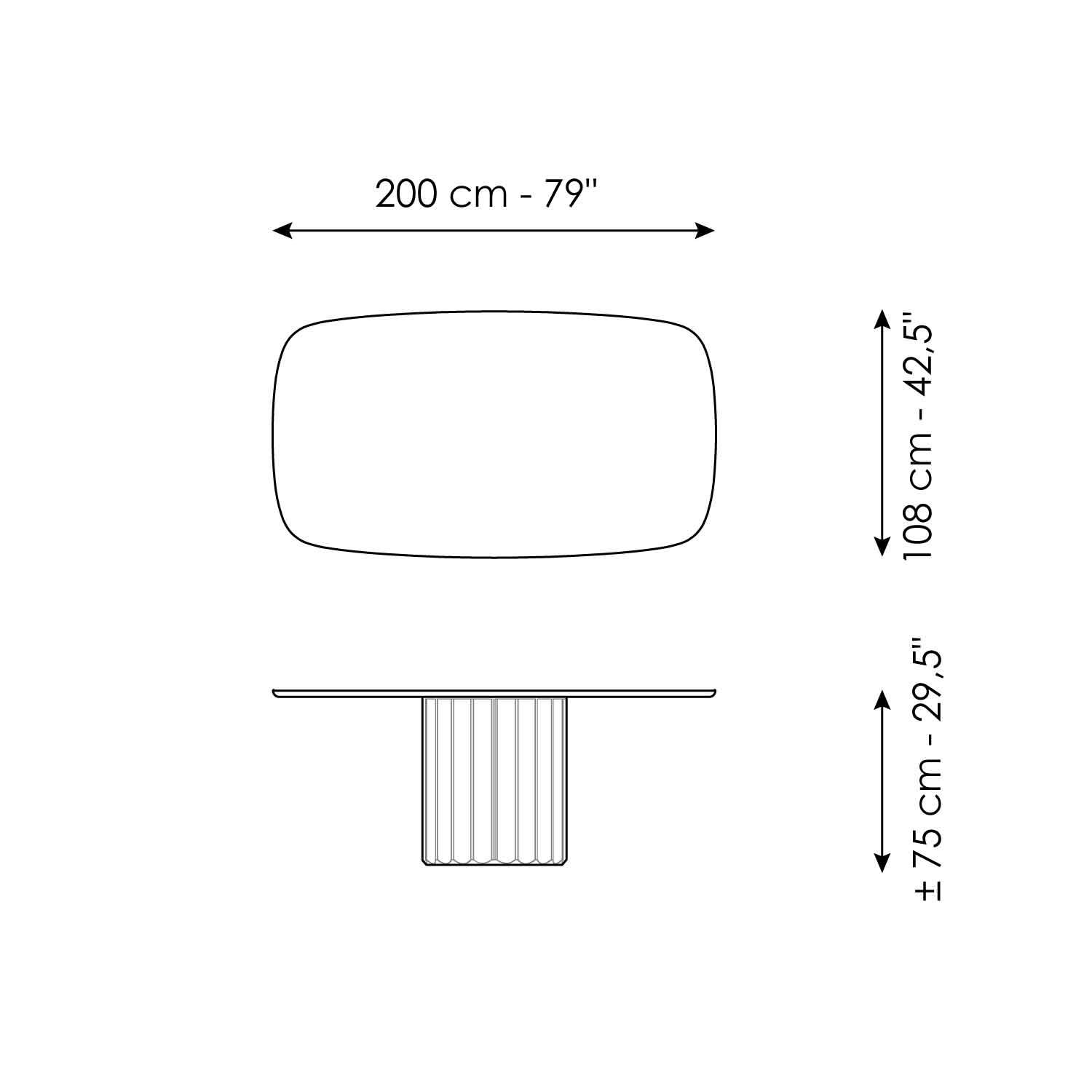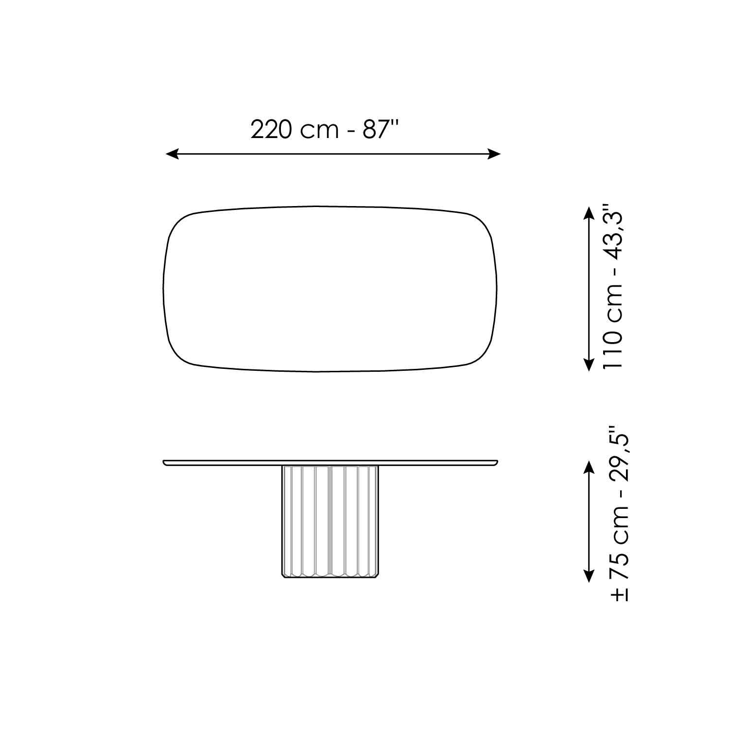 In the Dorian modern oval dining table, flexible qualities and geometric simplicity establish an interplay through contrast. The large top - made of ceramic, marble or wood - rests on a base with a striking sculptural character, consisting of an elegant and surprising elongated cylinder that recalls the shape of a Greek column and which pushes the design towards ancient architectural horizons.