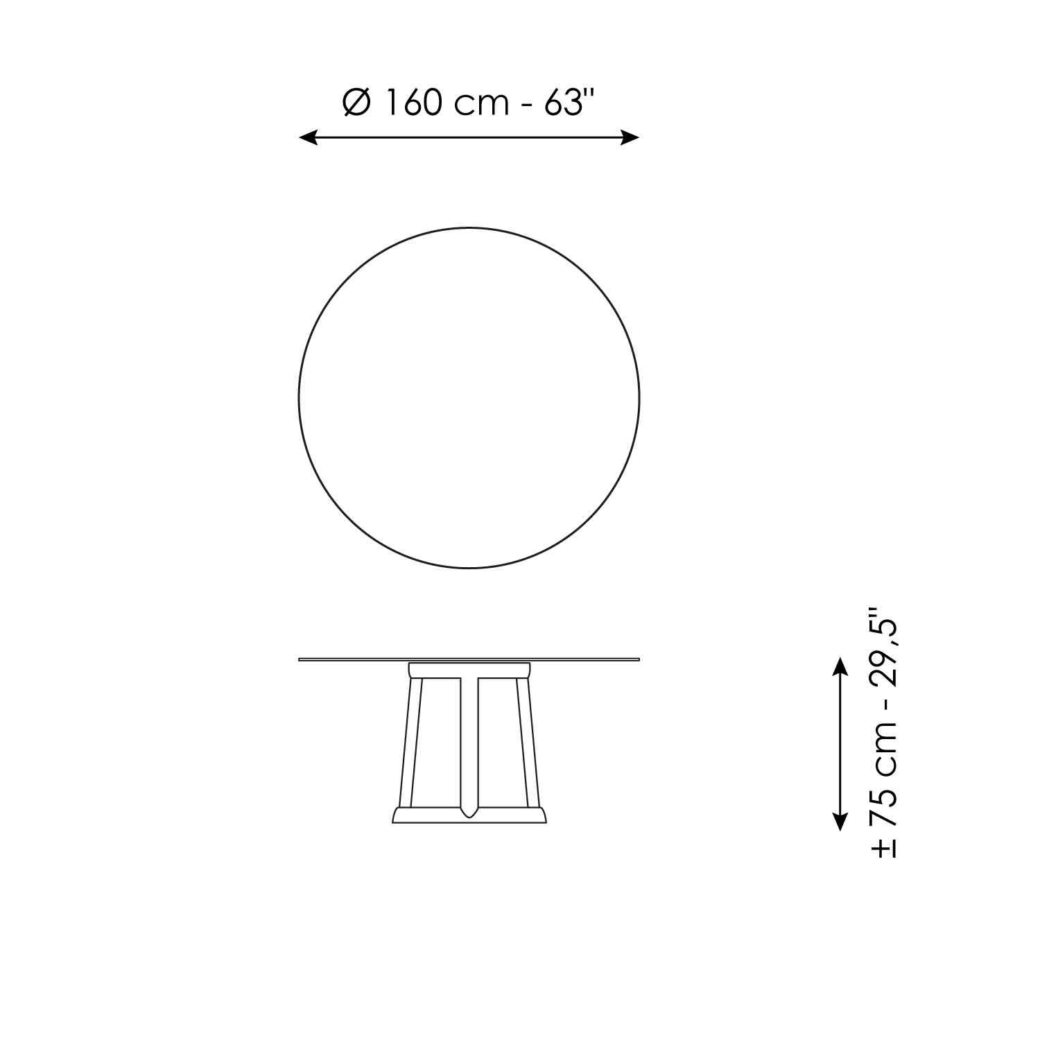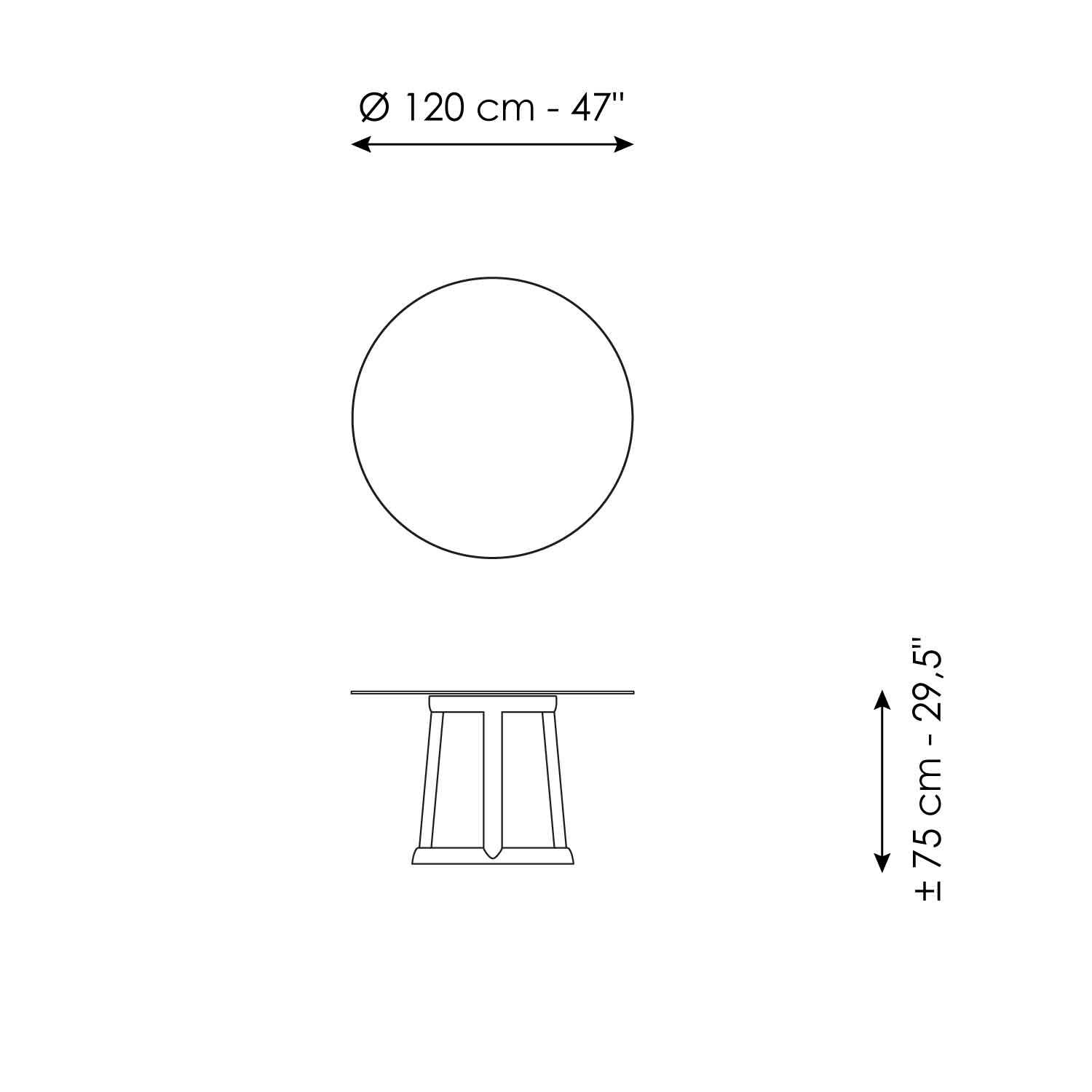 The elegance of the top’s lines, visible in its thinness, perfectly combines with the material value and the excellence of the cabinet work on the base: the result is a table that, even in its simplicity, expresses personality and visual lightness, displaying the most classic taste without, at the same time, giving up a more contemporary aesthetic. Greeny therefore lends itself to combinations with furniture of various styles: an elegant round dining table that can embellish and enhance any context.
