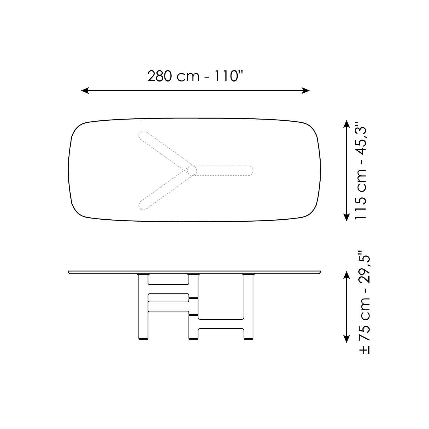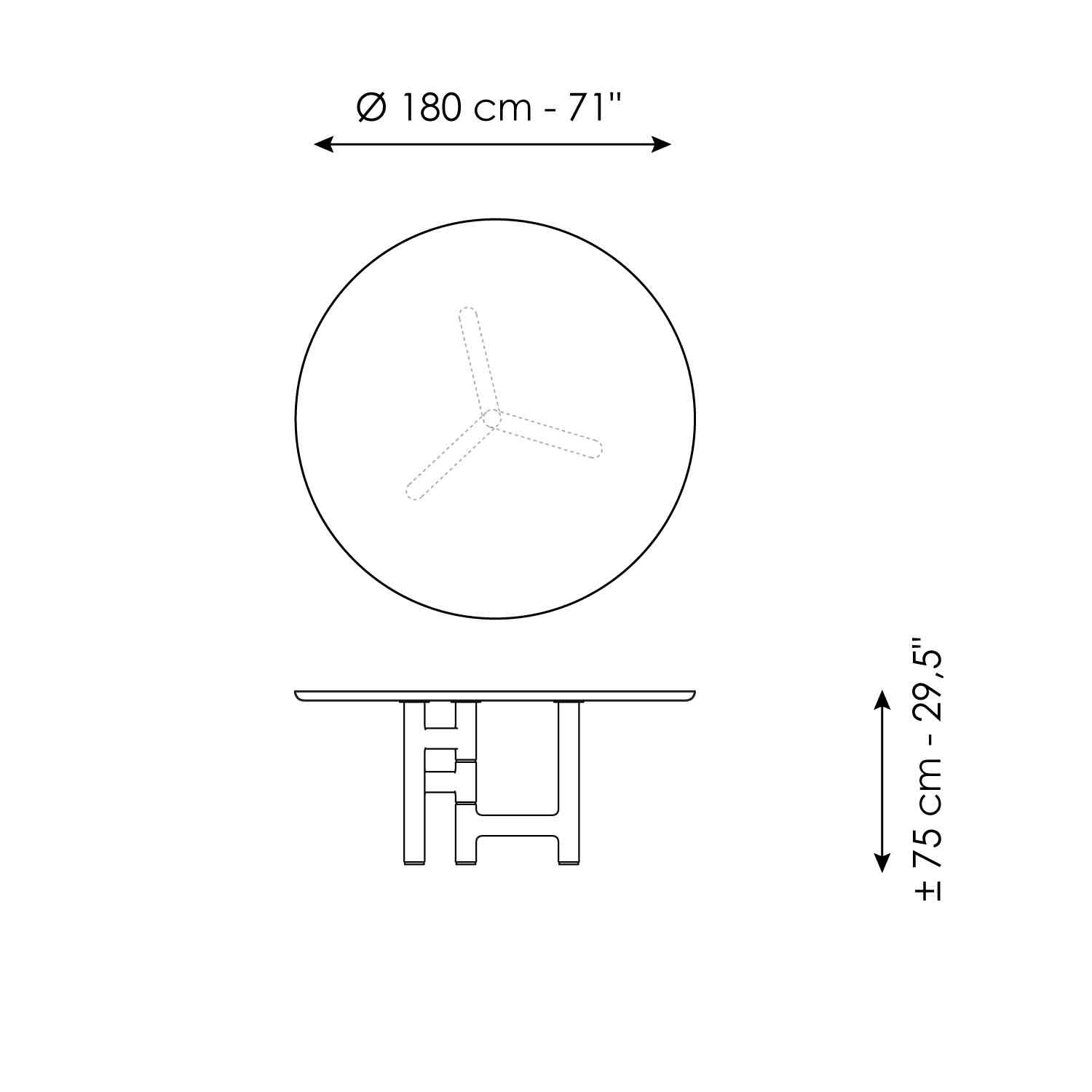 The Pivot table takes its name from the unusual shape of the base: the central leg acts as a pivot for the three legs which extend to the sides. The result is an asymmetric and highly original combination that makes a statement in the room.