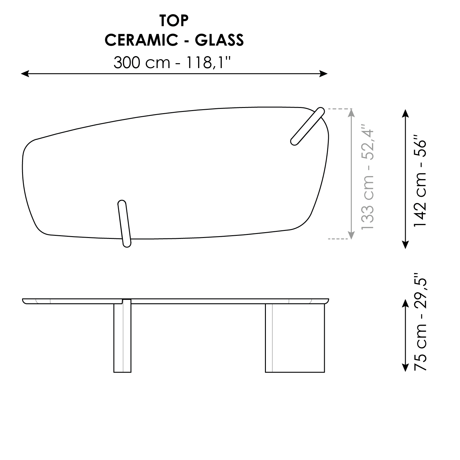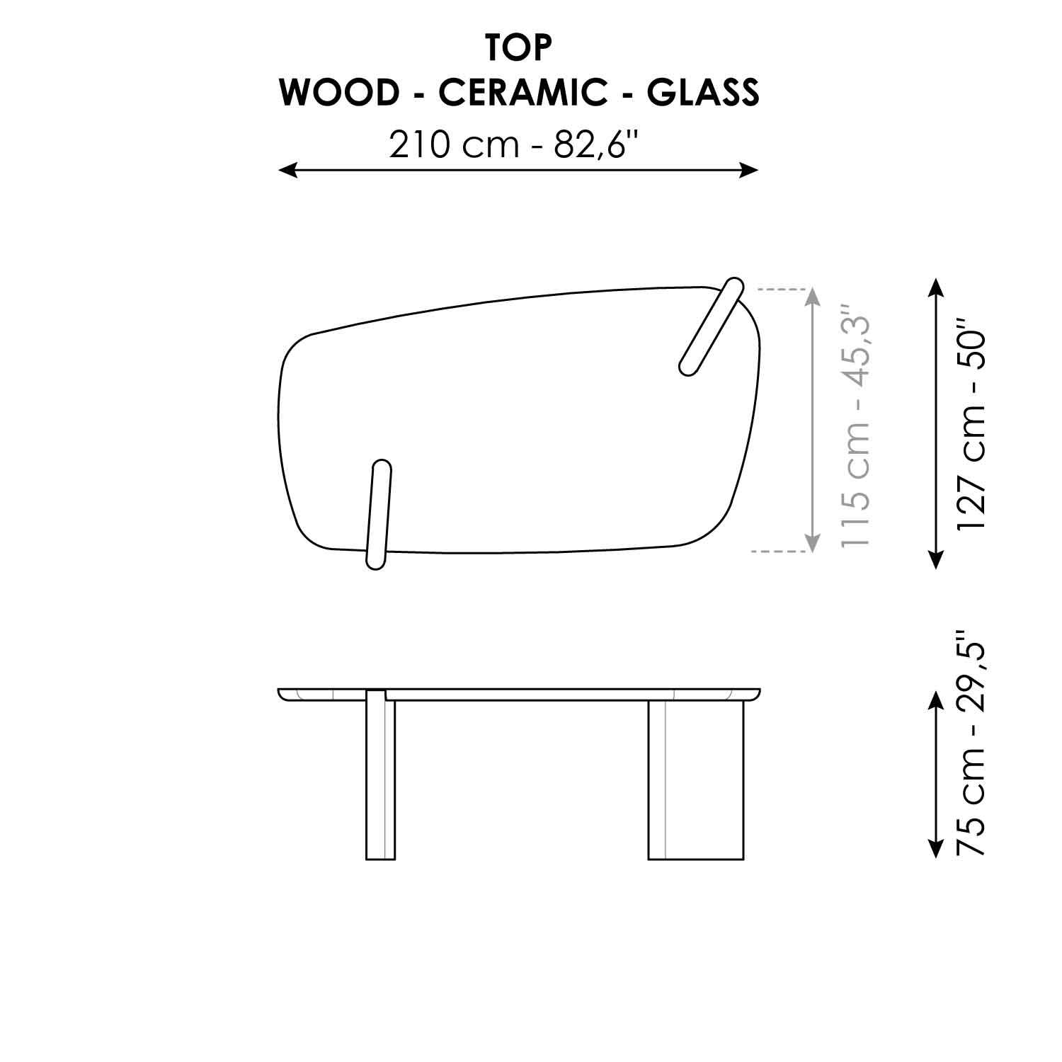 To meet different design needs, the Flatiron table is available in different versions: Mono or Double Material. The Mono Material version, with a wooden top and base for a highly harmonious overall vision, is available in either trapezoidal or round shapes. The Double Material version features a marble base that elegantly matches the wooden top, or a top in either glass or ceramic resting on a wooden base. A further option is the Free Combination, which allows for a free combination of different essences of wood for the top and lacquered wooden base in lead and bronze tones.