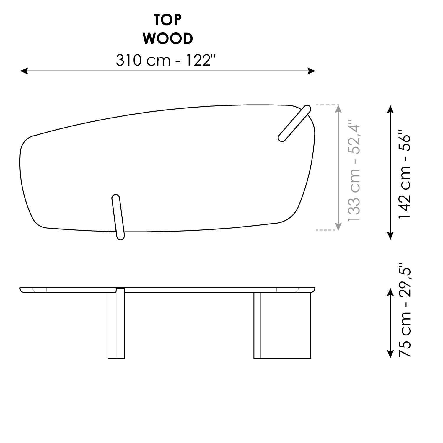 The unconventional and asymmetrical architecture of the Flatiron table, a modern design wooden table, also available in marble, defines its identity, creating a scenic presence with a strong visual impact. The top, characterised by a slightly trapezoidal shape and soft, curved edges, is available in three sizes, enhancing the versatility of a modern table designed to integrate naturally into prestigious residential environments.