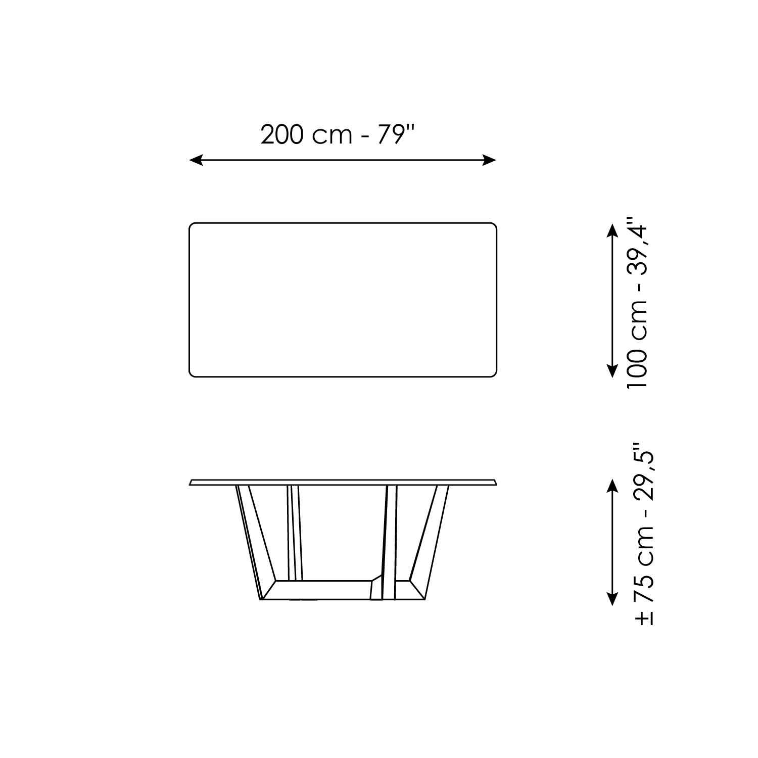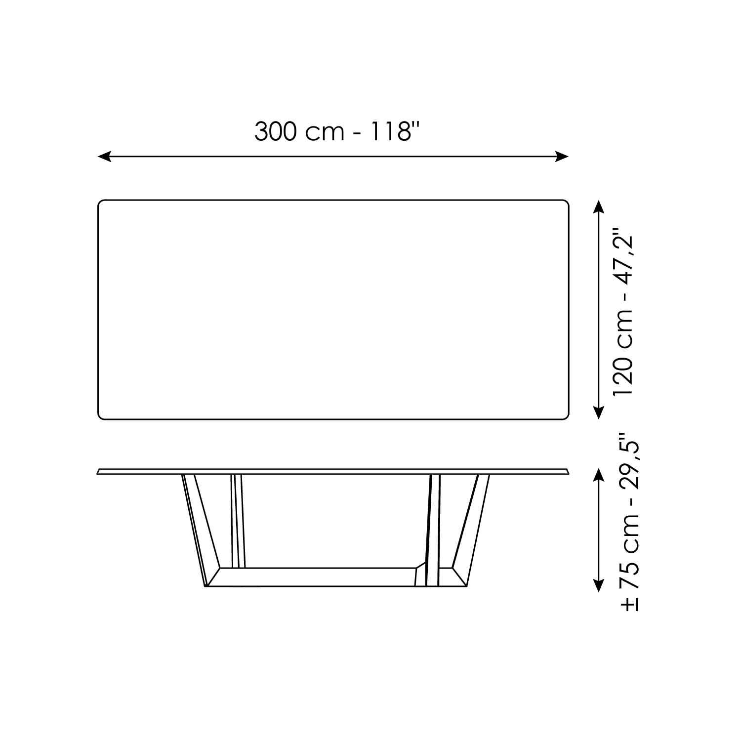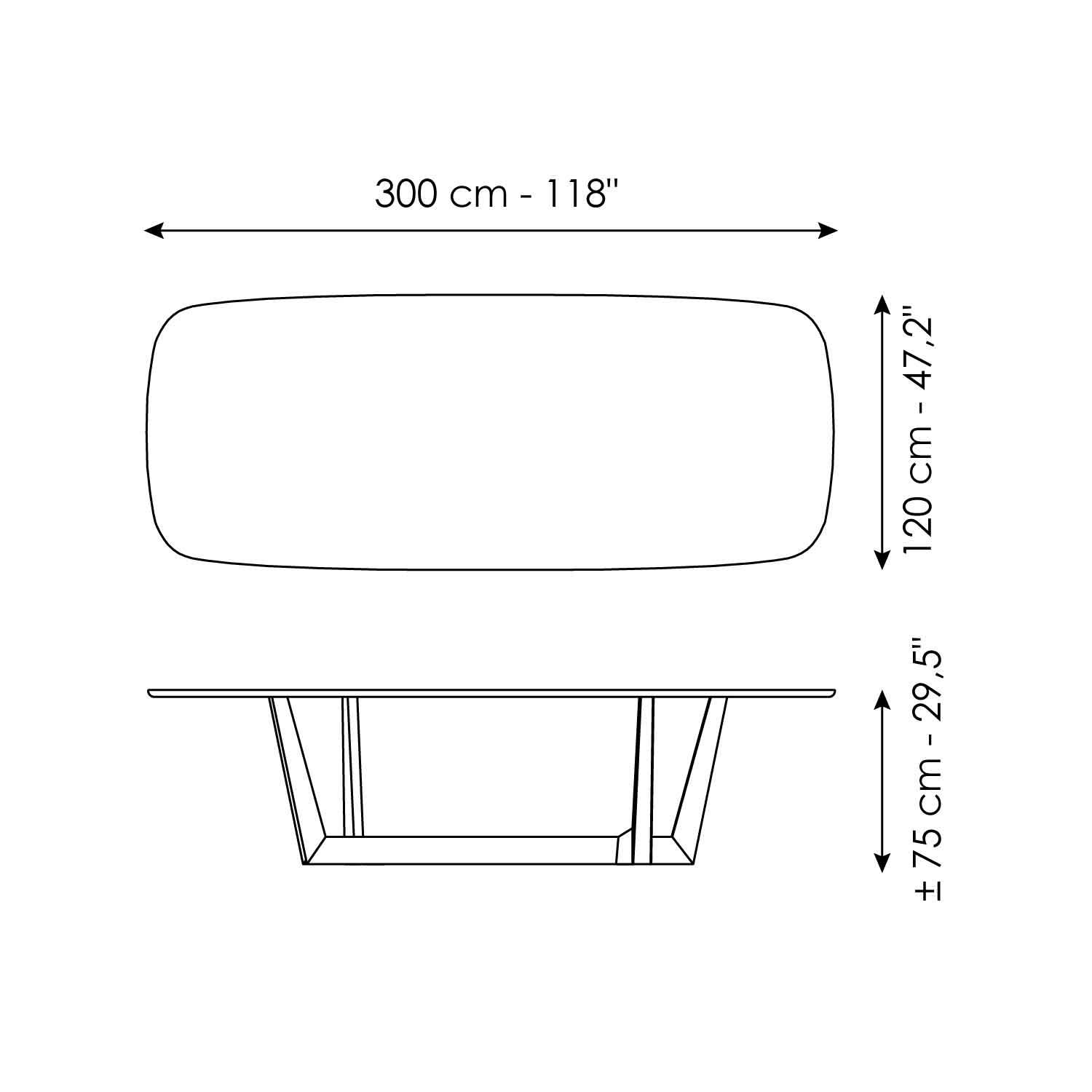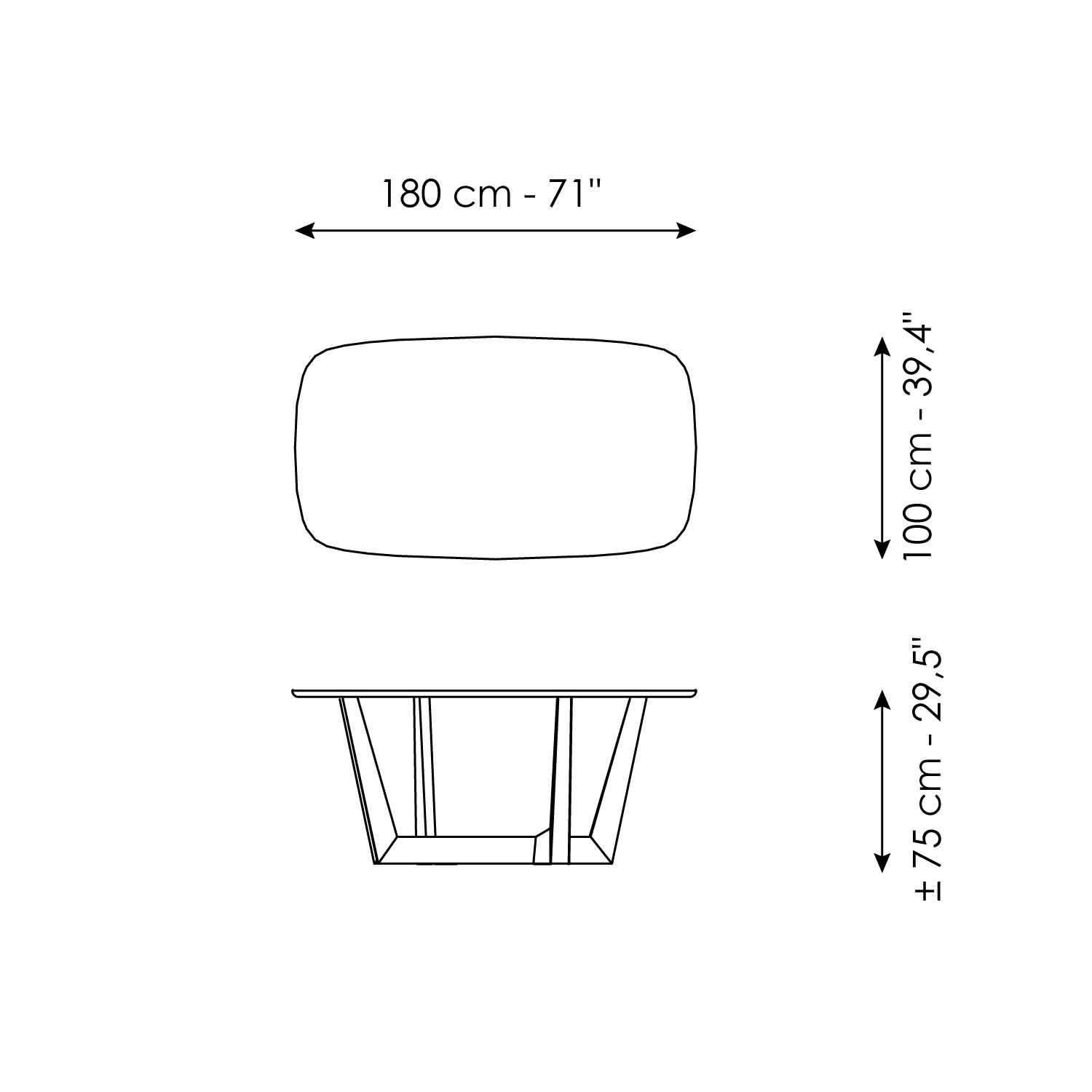 La base de la mesa Art es el elemento que más la caracteriza: consiste en un trapecio de metal que se desarrolla diagonalmente con respecto al tablero y permite aprovechar los espacios de la mejor manera.