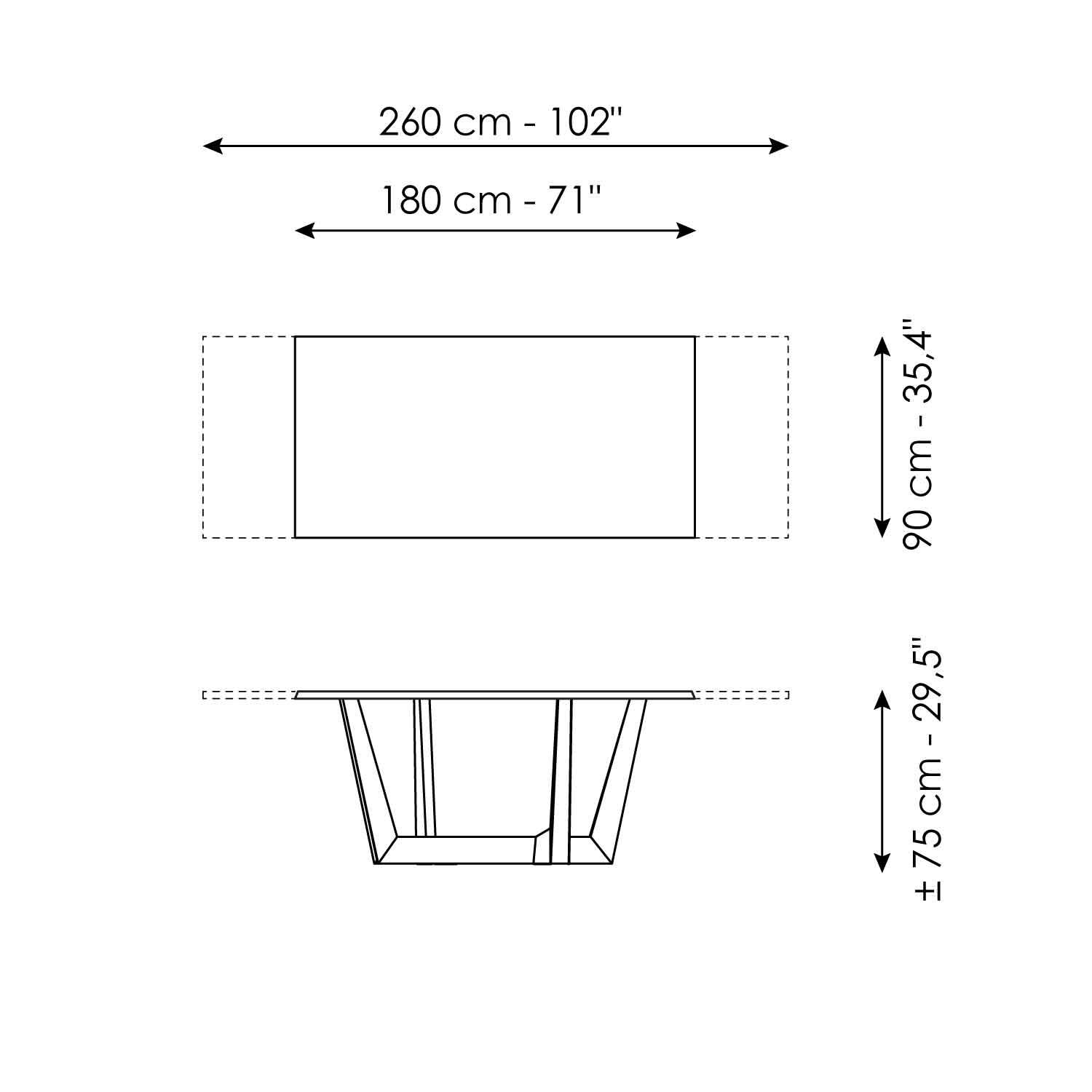La base de la mesa Art está realizada en metal pintado en numerosas variaciones cromáticas;  el tablero fijo (con esquinas en pico o redondeadas) o extensible está disponible en diferentes materiales: una versatilidad que la hace igualmente adecuada para el comedor o el estudio.