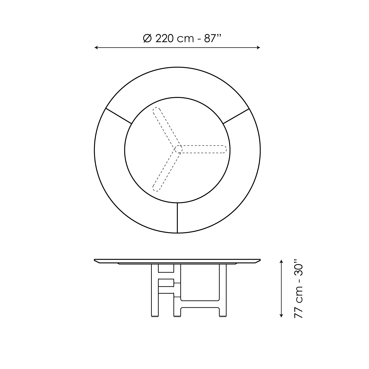 Nella versione ST (Swivel Top) con top girevole, Pivot ST cattura l’attenzione grazie al piano circolare disponibile in tre diverse misure caratterizzato da un binomio di materiali che alla cornice più esterna in legno accosta una parte centrale girevole in ceramica o marmo.