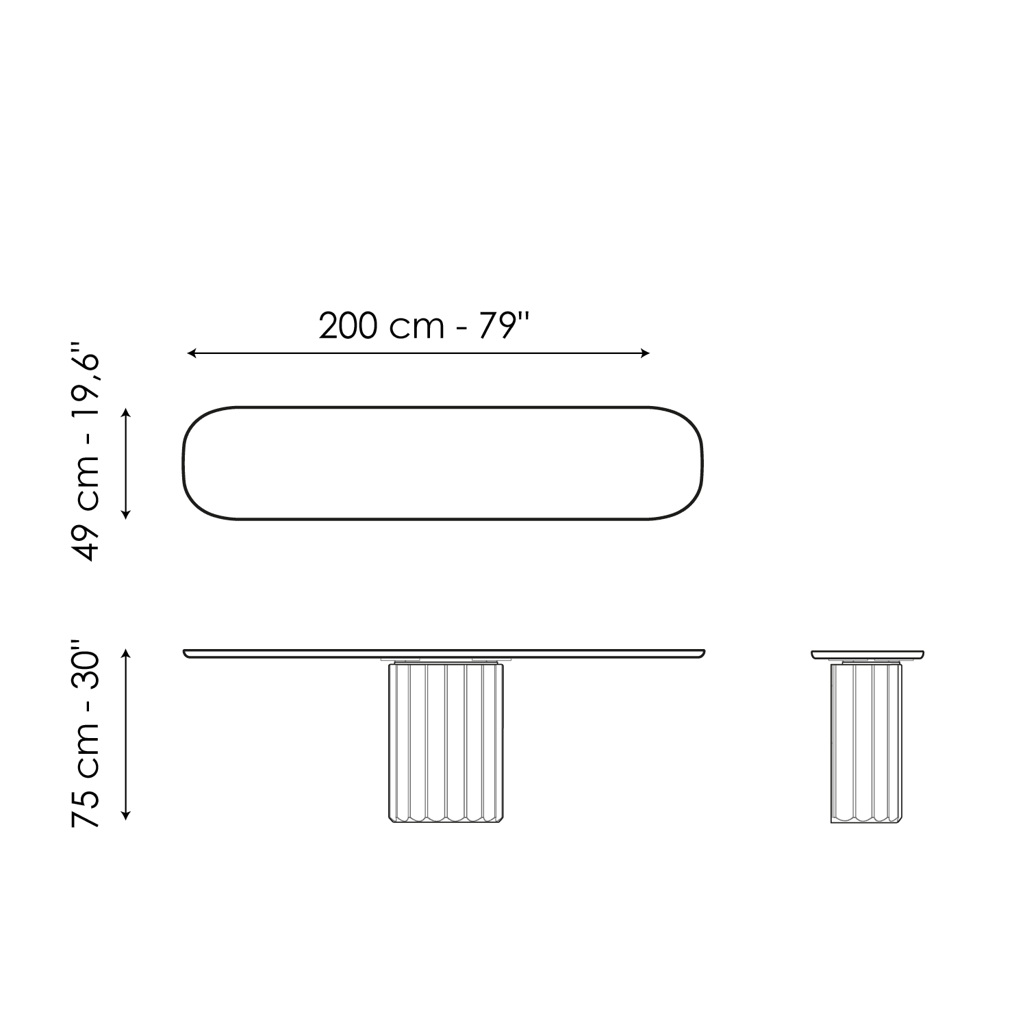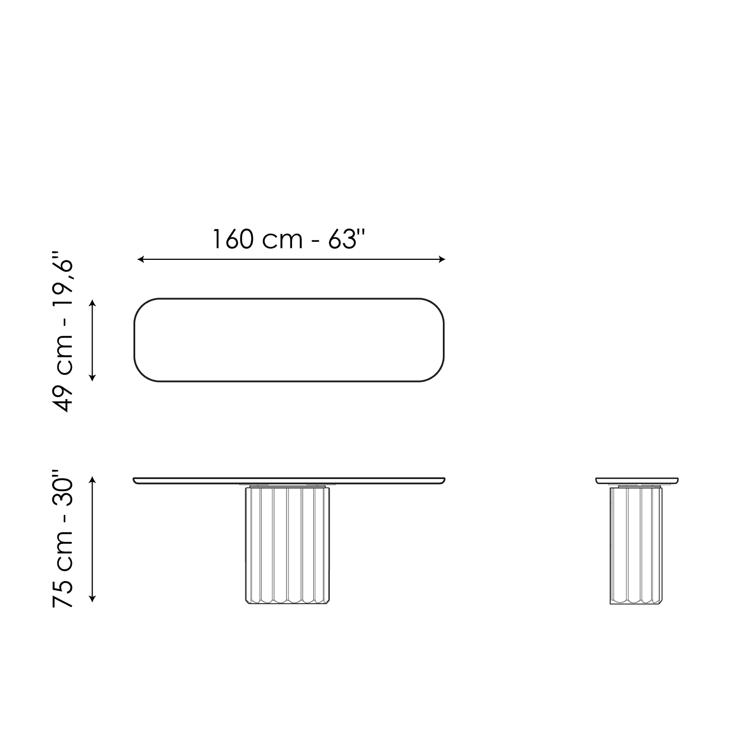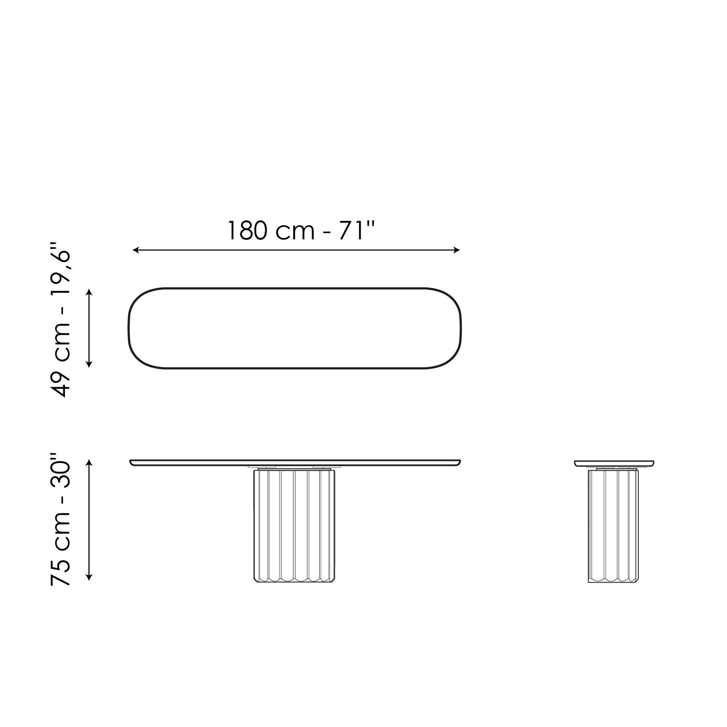 Dorian Console, a stunning design console table, is clearly inspired by the model of the Doric column: the essential element in ancient Greek architecture is in fact reinterpreted as the supporting base of this piece of furniture. Made of polyurethane with a brushed finish, the base features the typical grooved pattern. Where the classic capital was once originally located, there is now the slender surface of the top – available in wood, ceramic or marble - which highlights the visual contrast between the two parts.