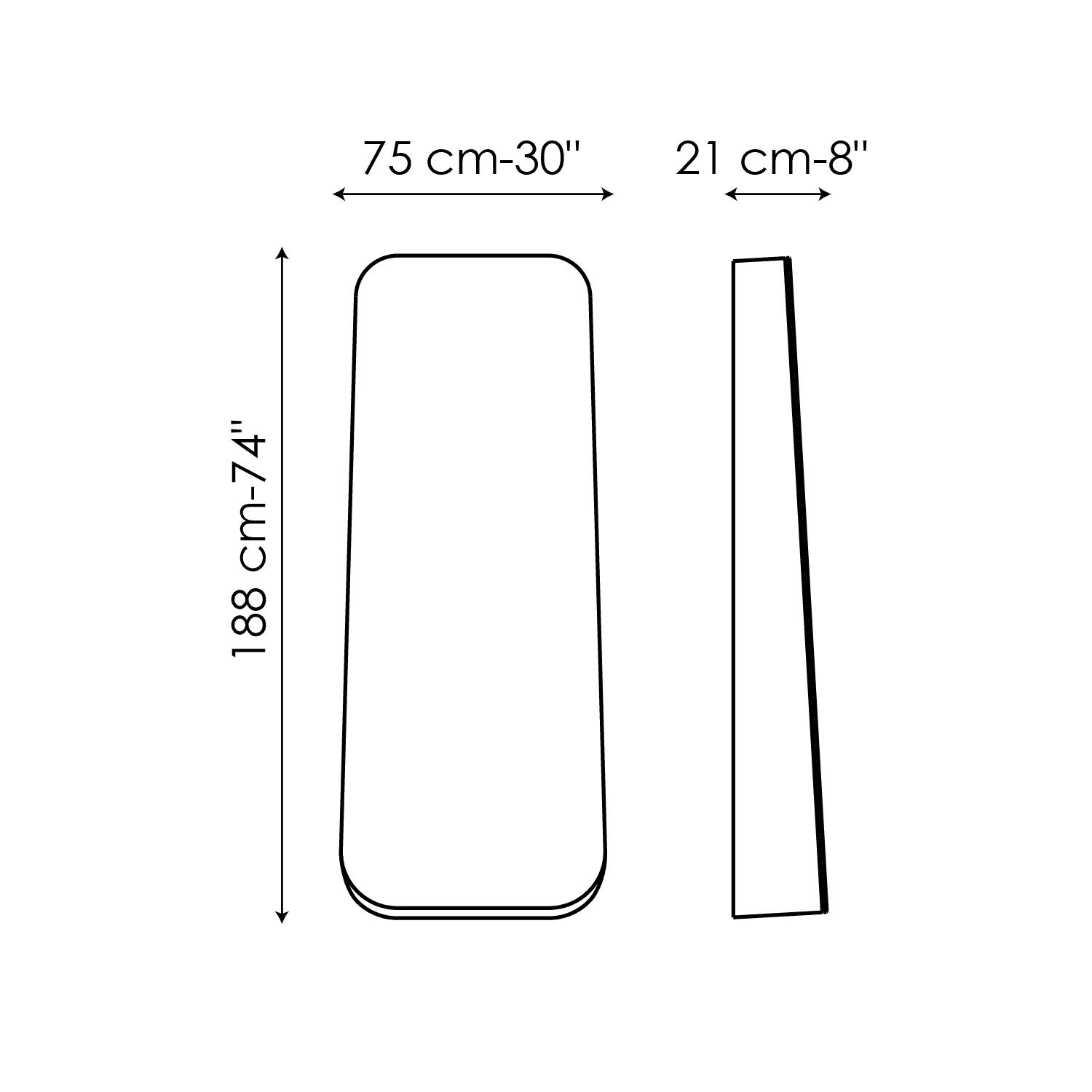 Obel is an important standing frameless wall mirror that, thanks to its large reflective surface, allows the individual to play the starring role. The trapezoidal shape, consisting of a thin structure with blunt contours, has a wider thickness at the base and a narrower one at the top, giving movement to the whole. The wooden structure, which gives the vertical mirror volume and richness, is available in American walnut. Obel’s conspicuous size, as well as the rounded and sinuous profile, ensures a spectacular result of great impact. Its pure and slender monolithic presence is able to expand and decorate any space with lightness and sophistication: this is when functionality is in perfect agreement with beauty.